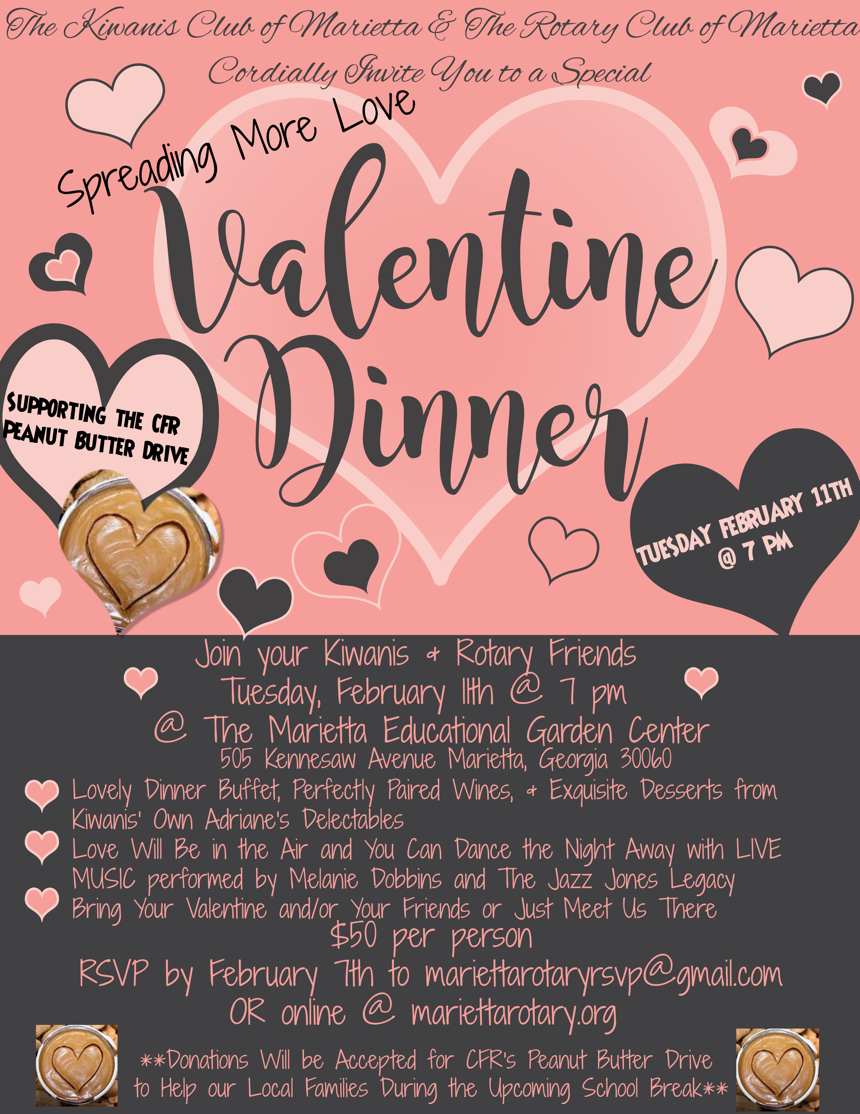 Rotary Club of Marietta joined forces with the Kiwanis Club of Marietta in November and in February to raise funds and collect jars of peanut butter for Cobb Family Resources' food pantry.